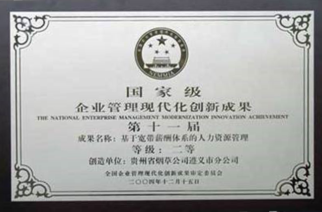 2004年11月,求是咨詢幫助提煉、撰寫的改革實踐成果《基于寬帶薪酬體系的人力資源管理》,榮獲第十一屆國家級企業(yè)管理現(xiàn)代化創(chuàng)新成果二等獎。